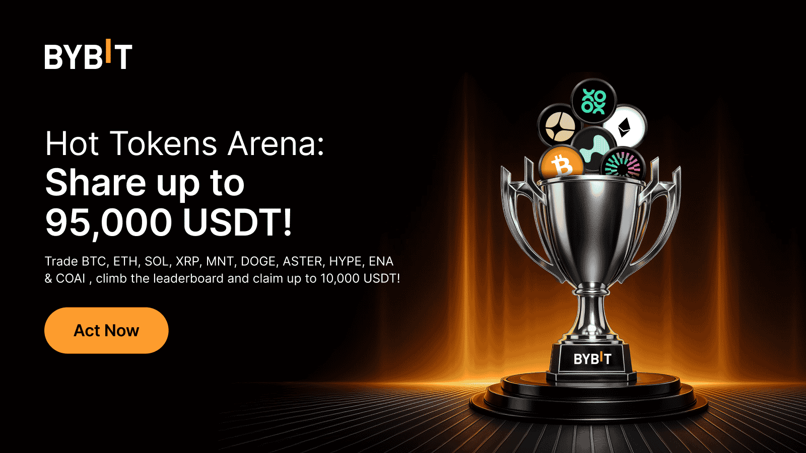 Bybit is turning up the heat in the world of cryptocurrency trading! You are invited to join the Hot Tokens Trading Arena and compete for a share of a massive 95,000 USDT prize pool.